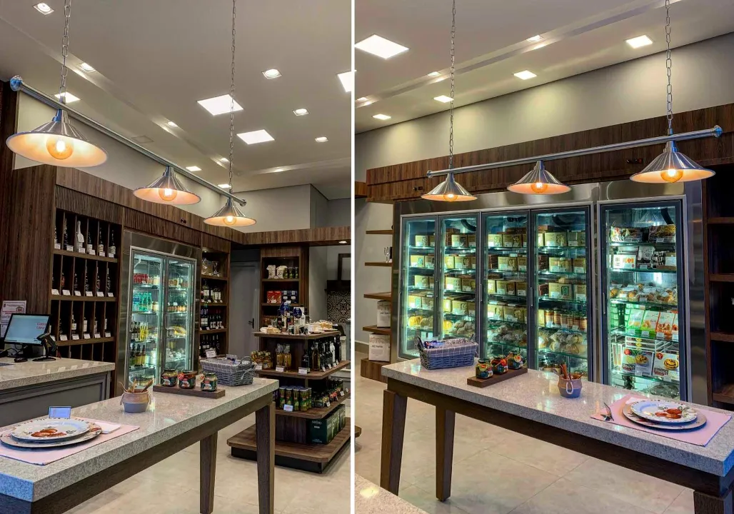 No mesmo caso das lojas de roupas, enquanto os comércios maiores precisam oferecer variedade e ganhar a atenção, comércios com artigos mais exclusivos, como empórios, podem apostar em tons mais aconchegantes.