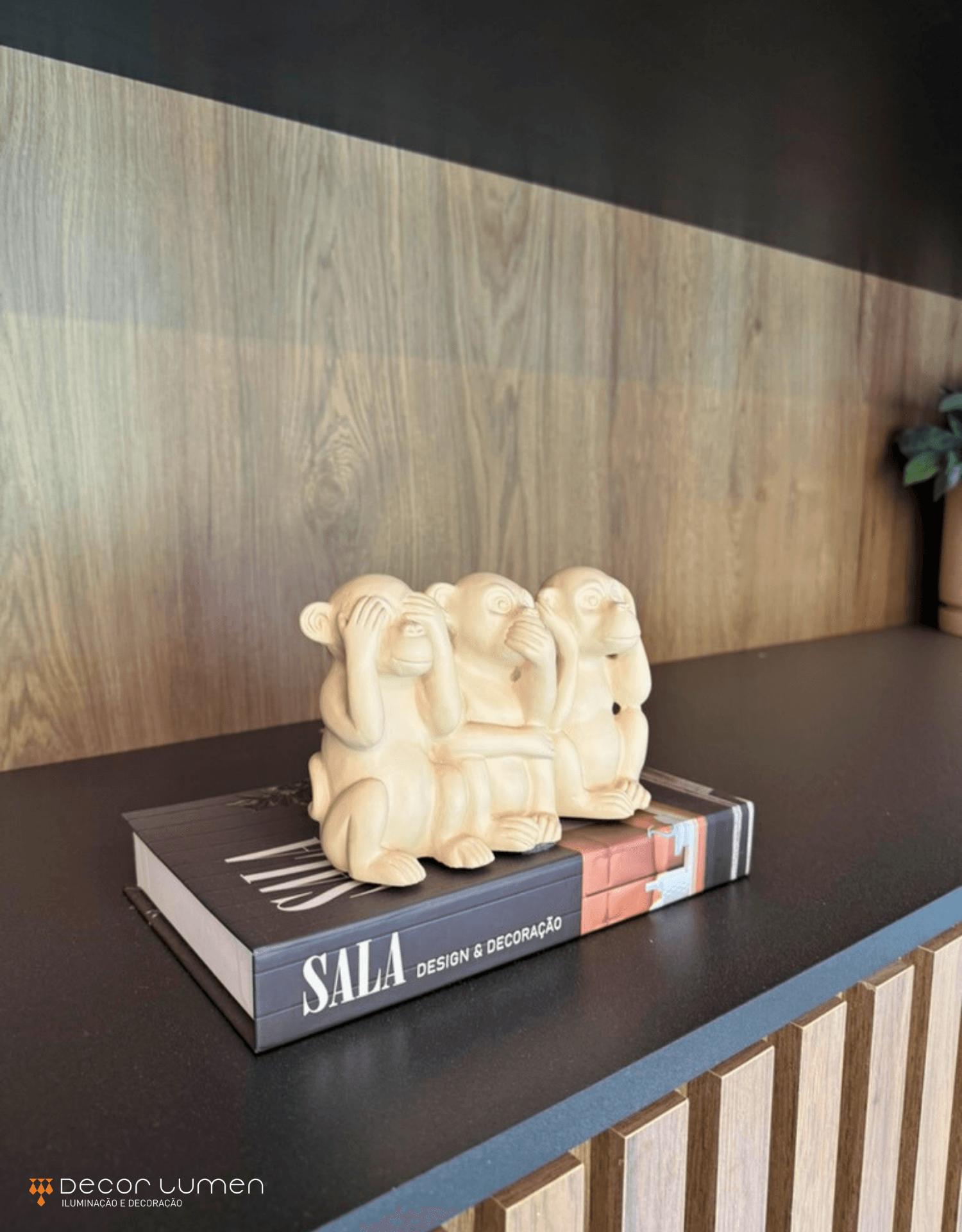 Pequenas decorações e esculturas sutis complementam o espaço, criando um equilíbrio entre elegância e descontração.